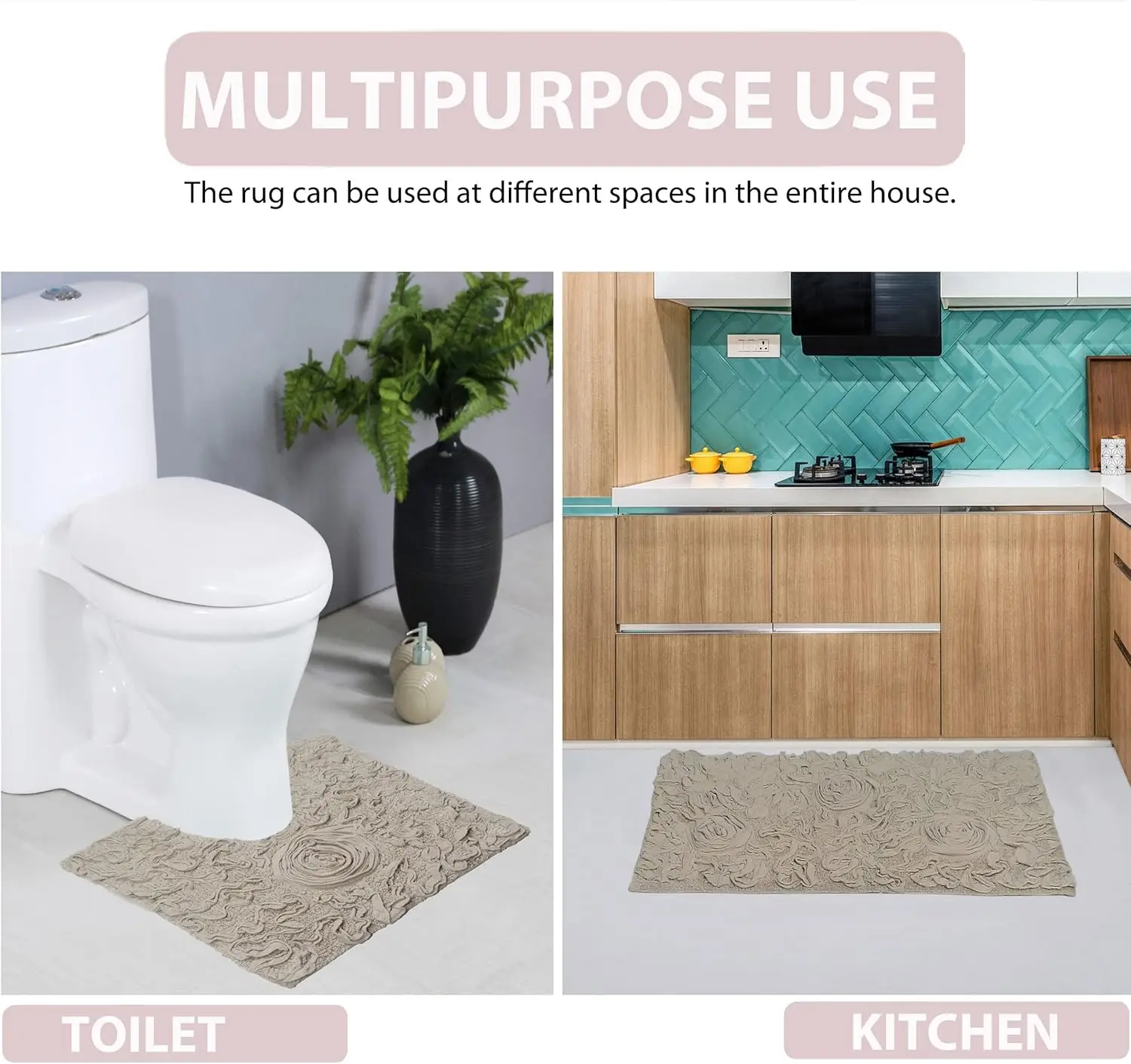 Transform your bathroom into a cozy oasis with our premium 3-piece bath rug set! Crafted from 100% pure cotton, these tufted rugs offer exceptional softness that feels gentle on your feet while providing superior absorbency to keep floors dry and safe. The innovative non-slip latex backing ensures stability for every family member, from children to seniors, making bathroom time worry-free. This complete set includes three perfectly sized rugs: a versatile 17x24 inch mat for sink areas, a spacious 21x34 inch rug for shower exits, and a unique U-shaped 20x20 contour mat that wraps around your toilet base—solving all your bathroom flooring needs in one elegant solution. Imagine stepping out of your shower onto cloud-like comfort that instantly absorbs moisture while the secure grip prevents accidental slips. The durable construction withstands daily use without losing its plush texture or vibrant appearance. Maintenance is effortless—simply toss them in your washing machine for easy cleaning that preserves their beauty wash after wash. Perfect for busy households, guest bathrooms, or creating a spa-like retreat in your master suite. These rugs combine practical safety features with luxurious comfort, making them an essential upgrade for any bathroom space. Choose the set that brings together style, functionality, and peace of mind for your home.