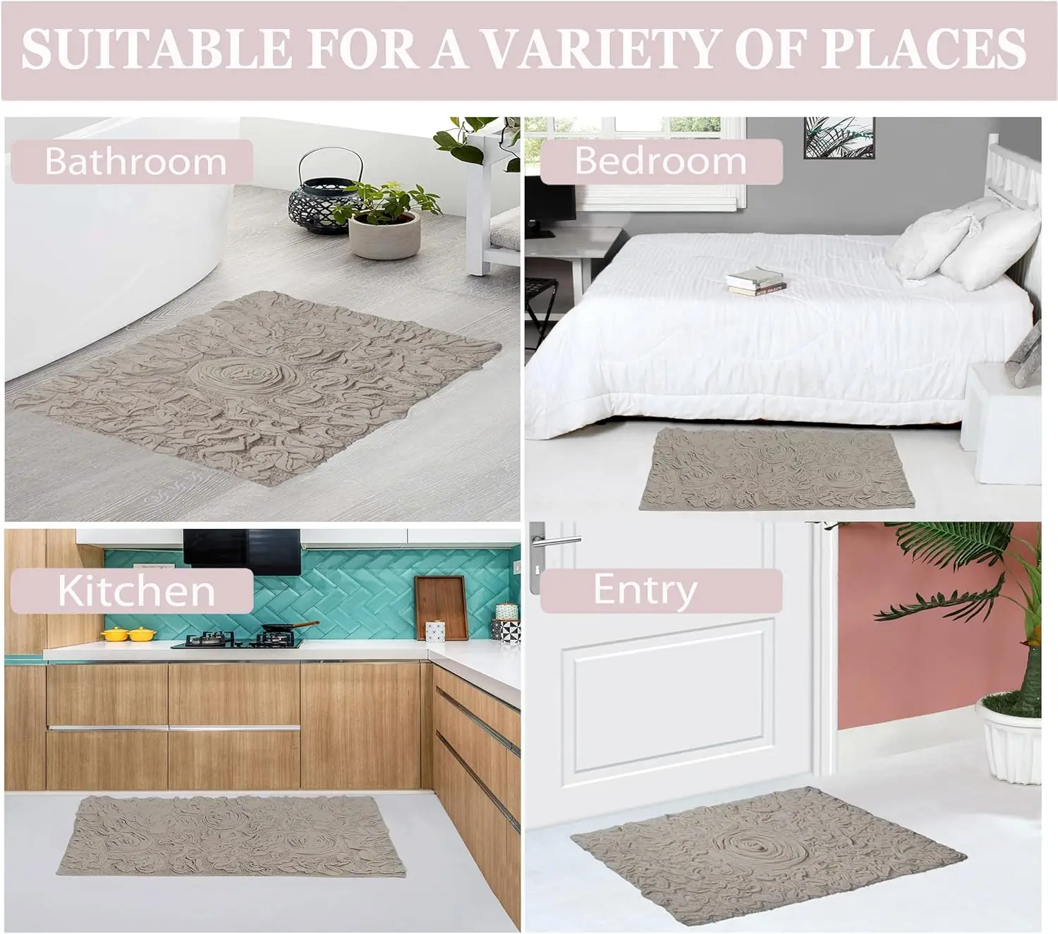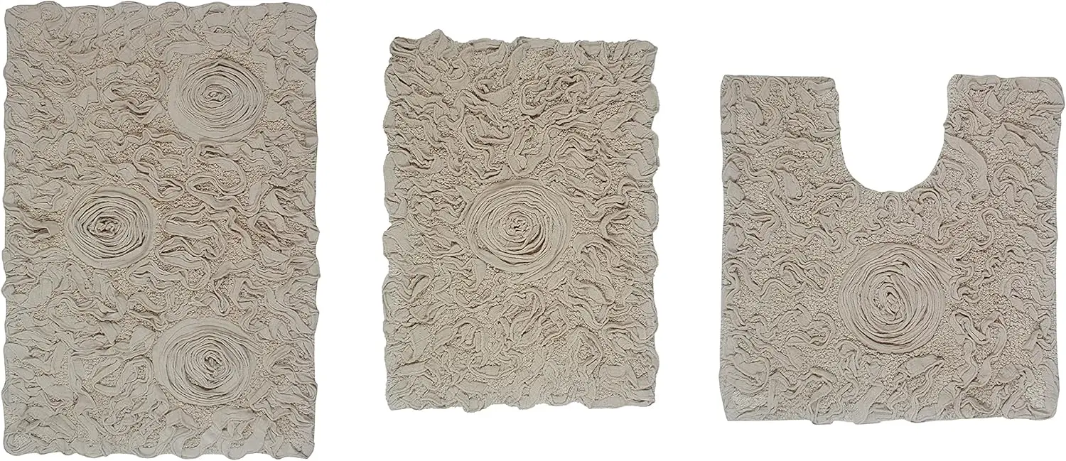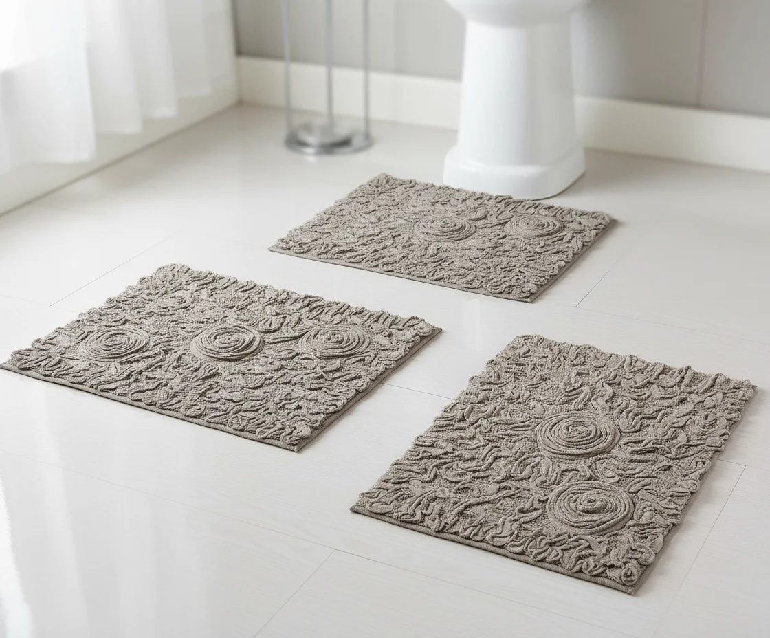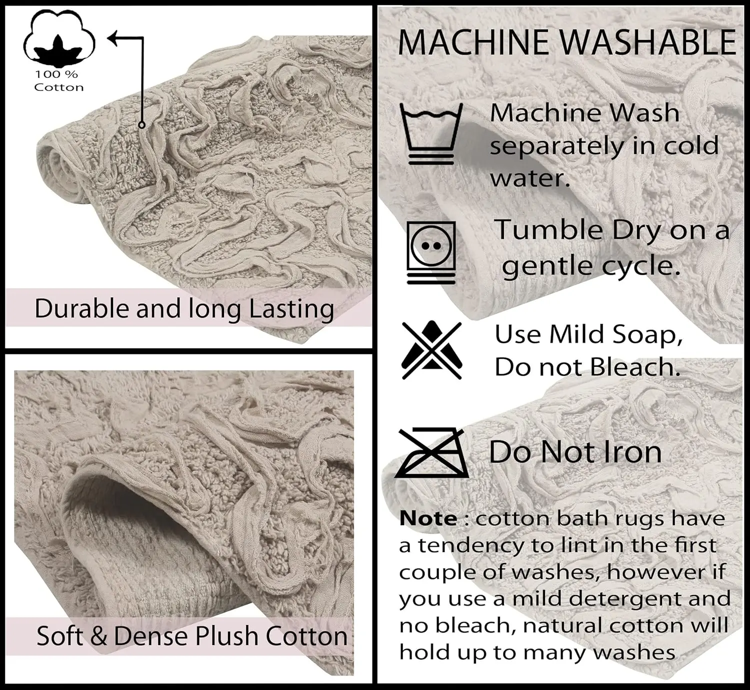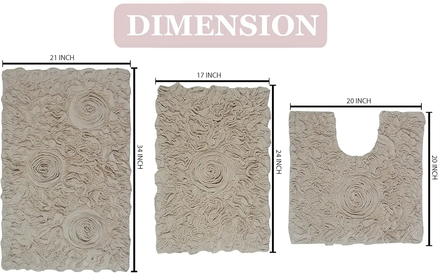 100% Cotton Tufted Bath Rugs Set, Ultra Soft Absorbent Non-Slip Mats, 3-Piece for Family Bathroom