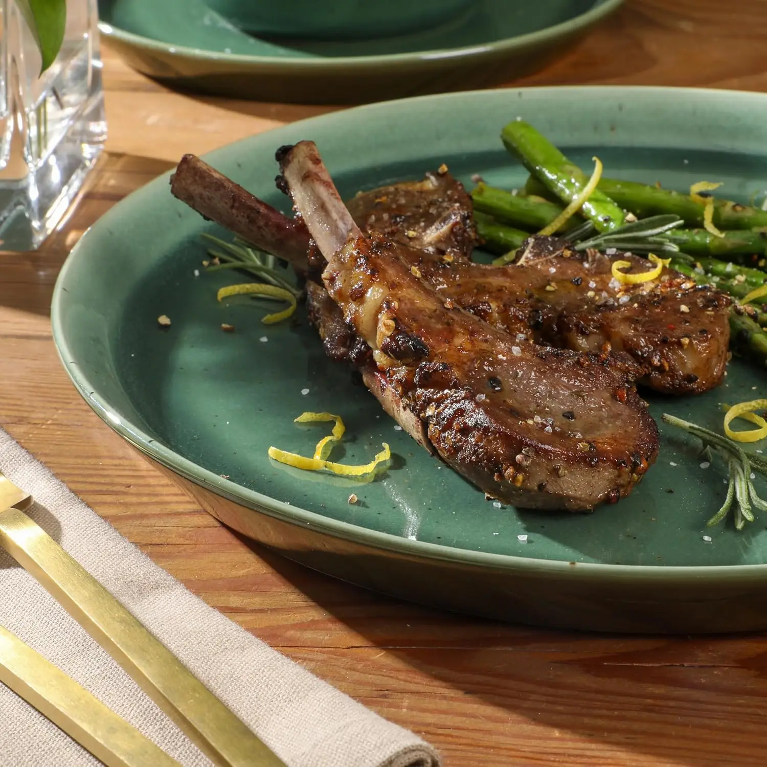 12-Piece Ceramic Dinnerware Set for 4, Reactive Glaze Plates & Bowls, Modern Stoneware Dishes - Elegant Green