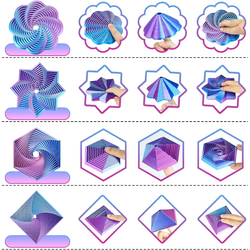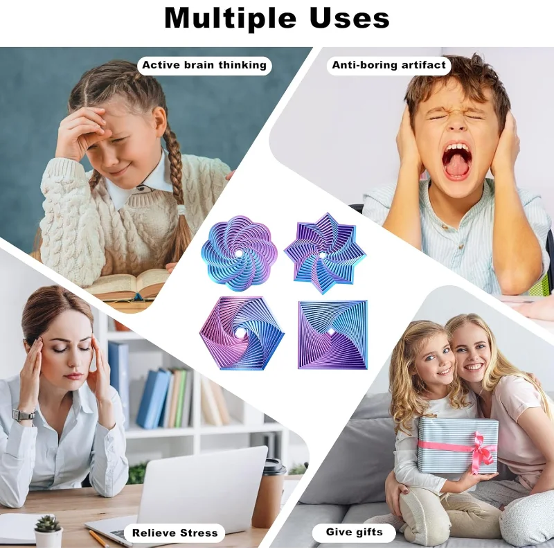 4 Pcs Fractal Fidget Hexagon, Stress Relief Sensory Toys for ADHD,Autism Whirling Spiral Design,Colorful Fidget Toy Christmas