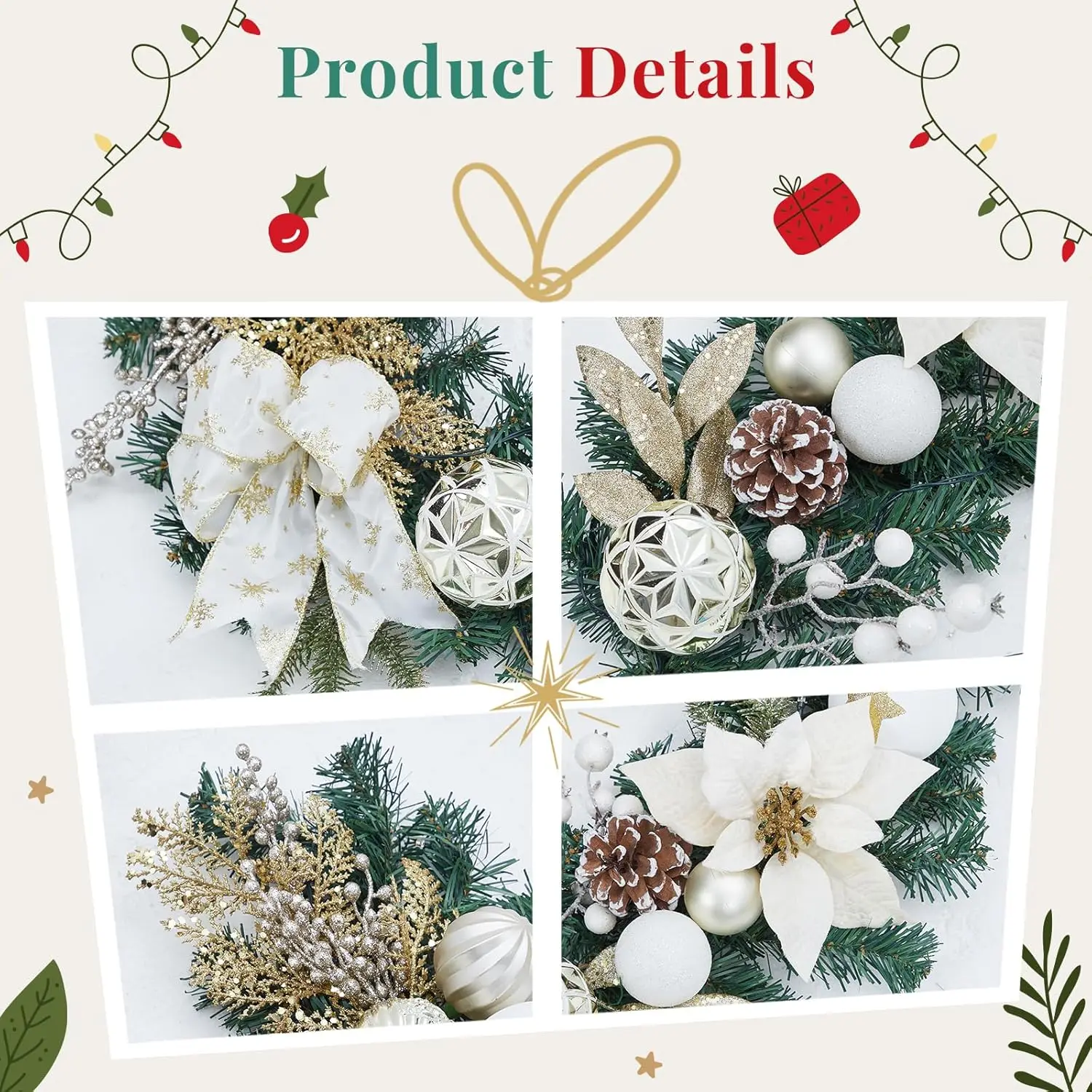 🎄Detailed Holiday Decor:  The combination of champagne flowers, gold and white accents and decorative elements adds a touch of elegance to your Christmas décor. Perfect for indoor and outdoor use, this artificial garland is an essential decoration for creating a merry and bright holiday atmosphere.