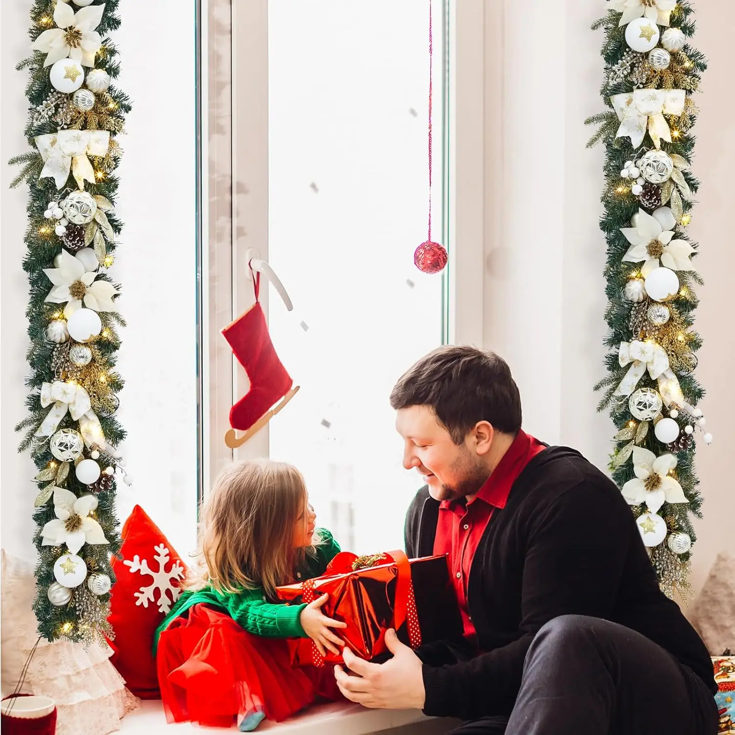 🎄Versatile Use:  This lighted Christmas garland is suitable for various settings, from mantles and staircases to table centerpieces and outdoor decorations. Its versatility allows you to decorate any space with festive charm and holiday spirit.