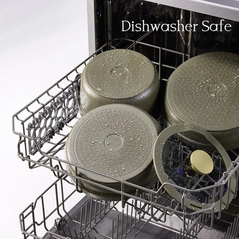 Transform your cooking experience with this versatile 9-piece ceramic cookware set designed for modern kitchens and on-the-go lifestyles. Crafted from premium non-toxic materials completely free from PFAS and PFOA, this collection ensures every meal you prepare is as healthy as it is delicious. The innovative detachable handle system makes storage incredibly convenient, perfect for compact spaces like RV kitchens, small apartments, or dorm rooms where every inch counts. Experience effortless cooking with the advanced non-stick ceramic coating that requires minimal oil while delivering perfect results every time. Whether you're searing steaks, simmering soups, or frying eggs, these pots and pans distribute heat evenly across all cooking surfaces including induction cooktops, gas stoves, electric ranges, and ceramic hobs. The thoughtful set includes everything you need: a versatile 3-quart saucepan ideal for sauces and grains, two frying pans (9-inch and 10-inch) for different cooking tasks, two silicone lids to keep food fresh, a detachable handle for multi-purpose use, a complete utensils set, and protective pan guards. Imagine waking up in your RV to perfectly cooked breakfasts without worrying about sticky cleanup. Picture hosting dinner parties where your beautiful cookware becomes part of the presentation. Envision weeknight meals that come together quickly because cleanup takes just minutes. The dishwasher-safe design means you can spend more time enjoying meals with loved ones and less time scrubbing pots. The vibrant green color adds a touch of elegance to any kitchen decor while the space-saving nested design keeps your cabinets organized and clutter-free. Join thousands of satisfied home chefs who have discovered how professional-grade cookware can elevate everyday meals into extraordinary dining experiences. This isn't just another kitchen set – it's your partner in creating healthier, more enjoyable meals for years to come. Perfect for newlyweds setting up their first home, busy parents needing reliable cookware, outdoor enthusiasts who love camping cuisine, or anyone seeking to upgrade their kitchen essentials. Don't just cook – create memories with cookware that works as hard as you do.