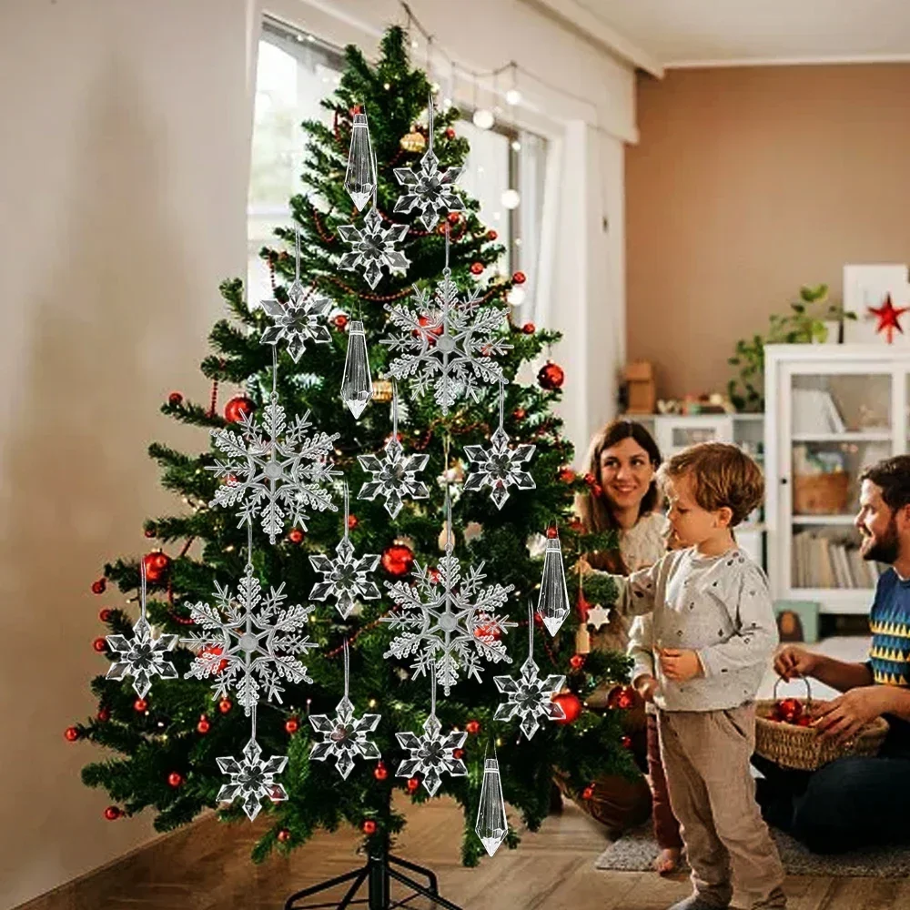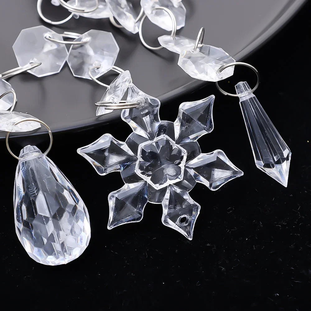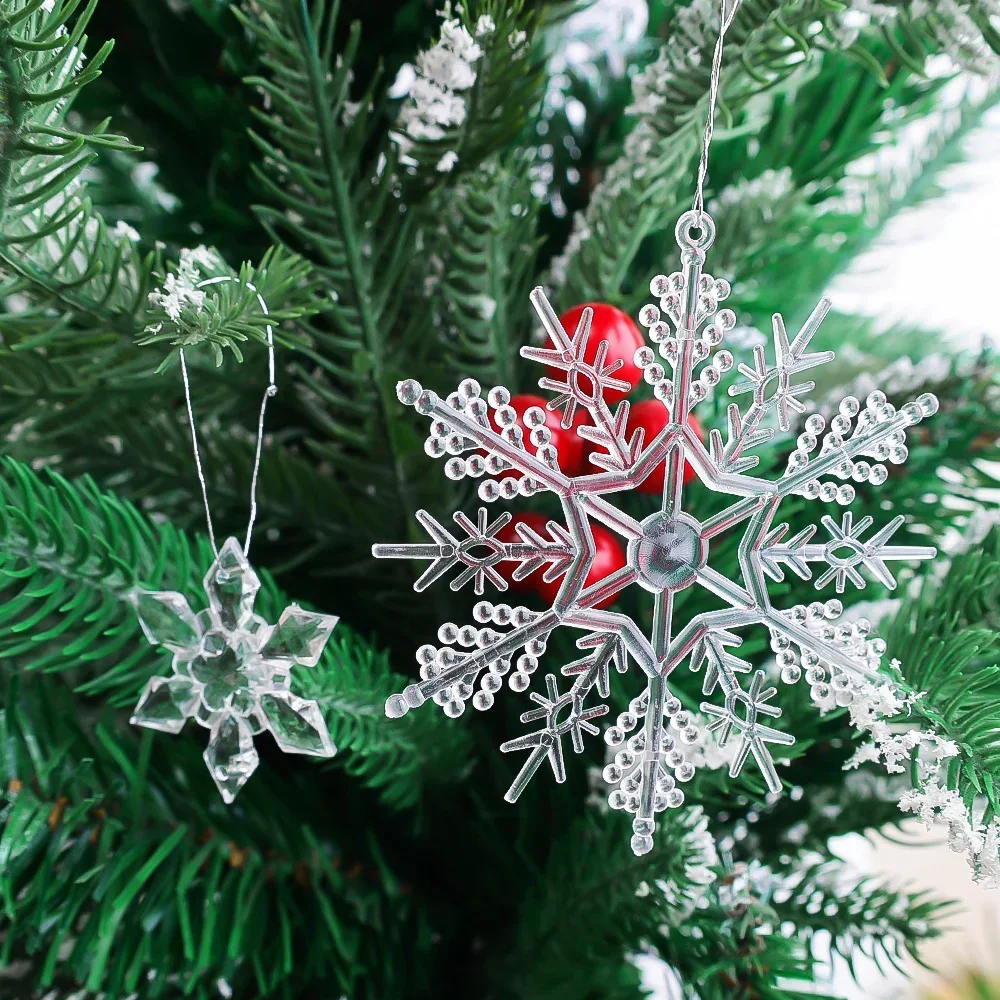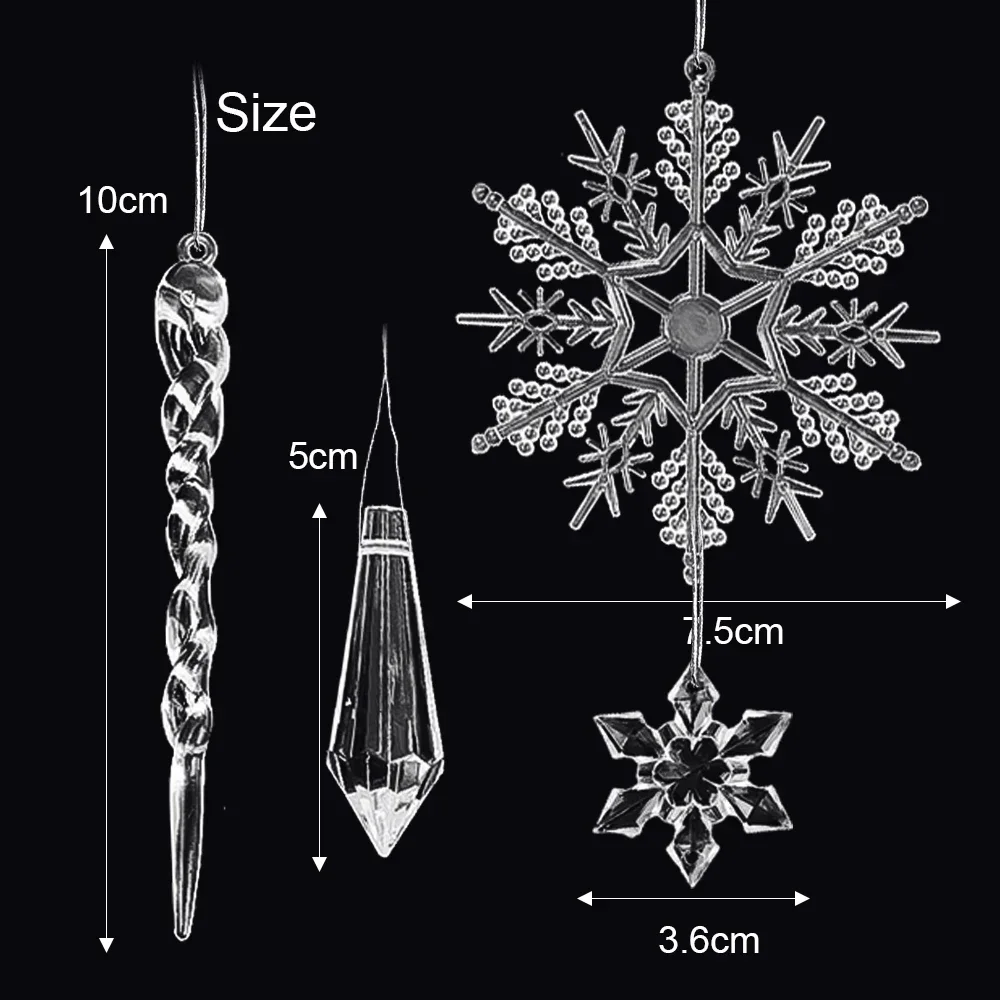 Crystal Clear Snowflake Acrylic Ice Pendants Christmas Tree Hanging Ornaments Icicle Water Drop Decoration For Xmas Winter Party