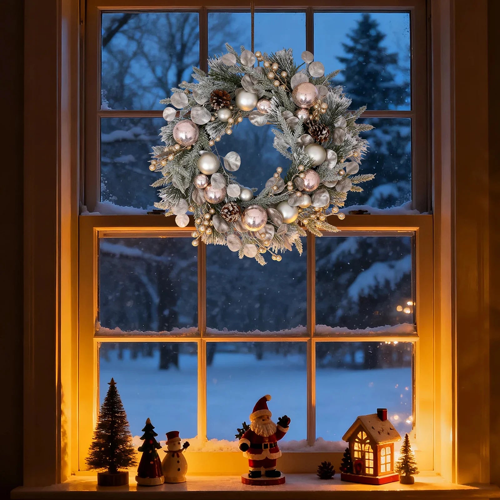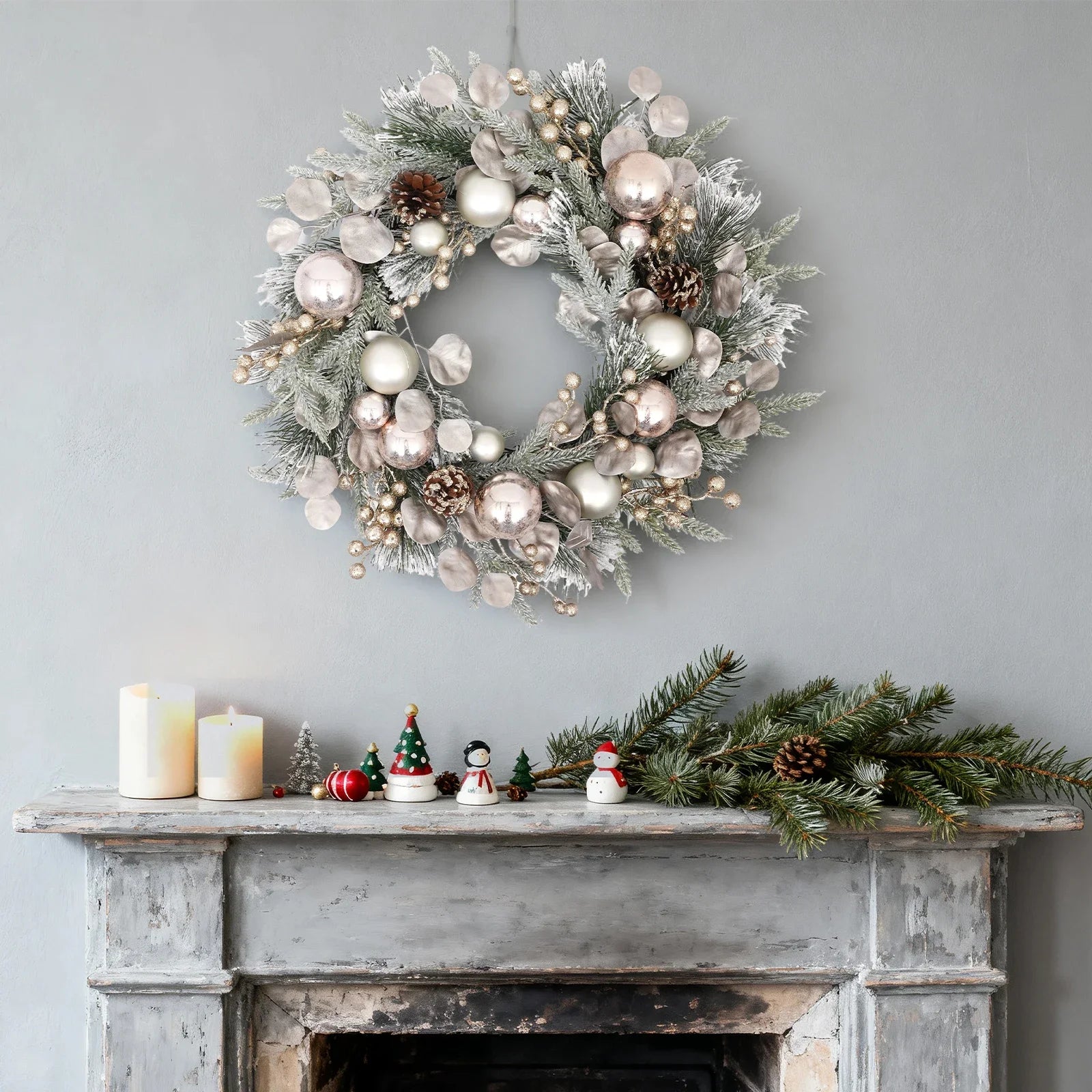 Durable Outdoor Christmas Wreath Shatterproof Ball Decorated on Mixed Pine for All-Weather Front Door