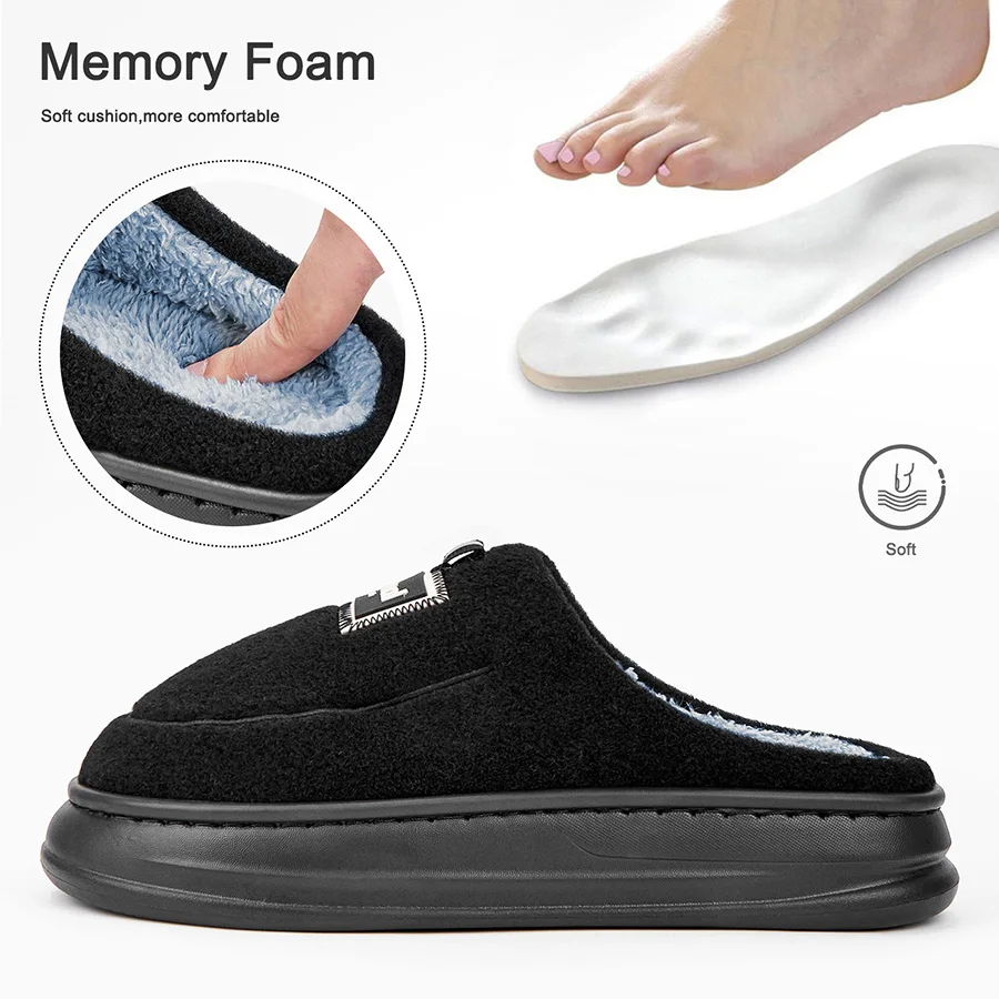 Pmoiste Men's Soft Fleece Slippers EVA Platform Memory Foam Indoor