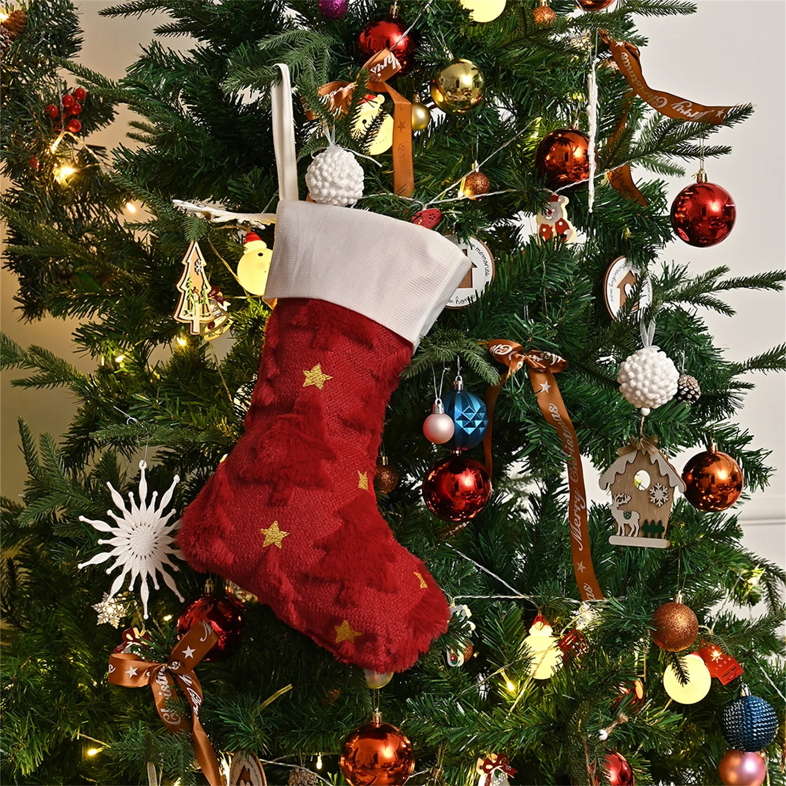 your Christmas decor with our highly-rated Christmas stockings! This five-star choice blends European and American holiday aesthetics, adding a warm atmosphere to your festive home.