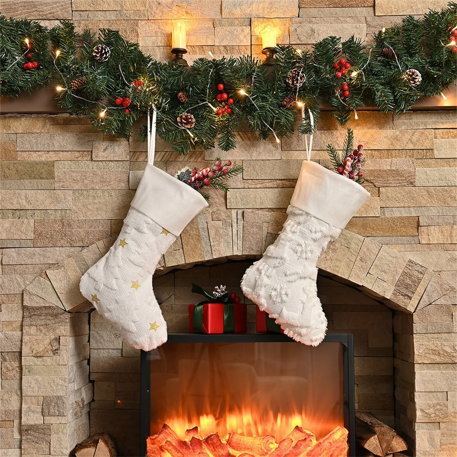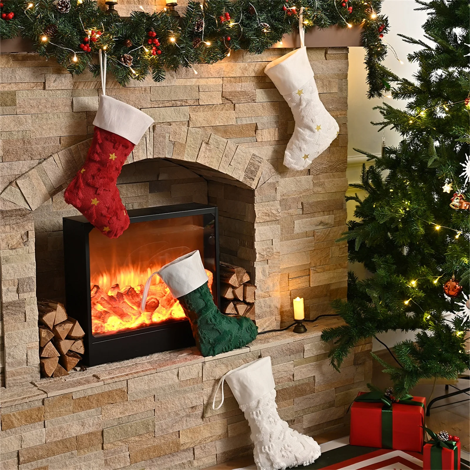 Versatile: Hang the fireplace, Christmas tree, stair railing, or mantel. Ideal for family gatherings, holiday parties, or as a thoughtful gift. Easy to clean—simply wash with mild soap and let dry to keep it looking new.