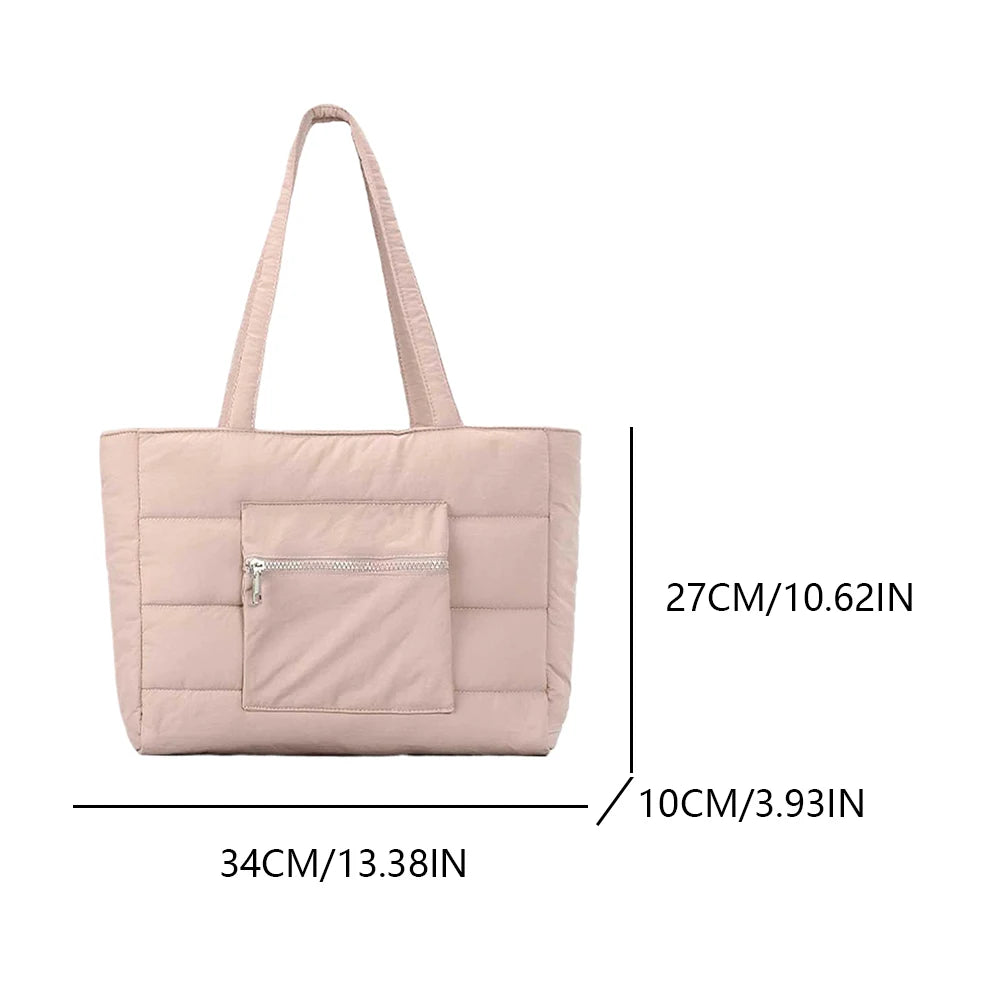 Puffer Tote Bag Lightweight Shoulder Bag Handbag with Zipper Everything Everyday Bag Carryall Bag for Women Work Shopping Travel