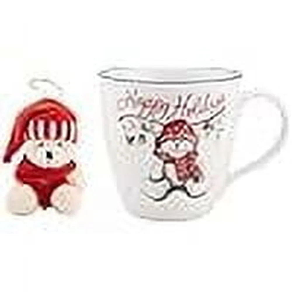 Winterberry Porcelain Mug with Plush Bear Holiday Ornament 20 oz Festive Christmas Drinkware Happy Holidays Gift Kids
